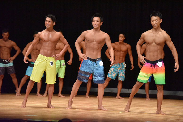 全員同一の規定ポーズが終わると、比較審査に入ります。番号を呼ばれた選手は前列へ出てきます。