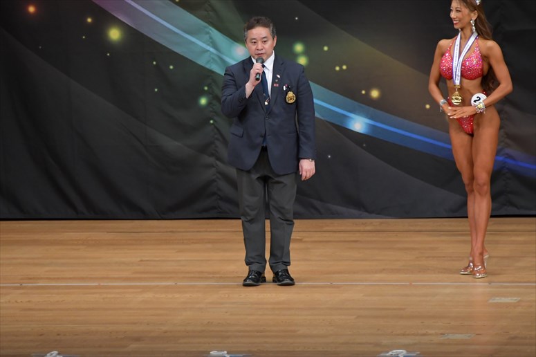 今大会の主管連盟である大阪ボディビル・フィットネス連盟の小川淳理事長です。